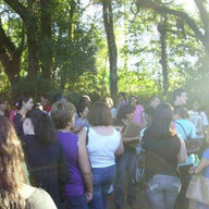 9th photo: Good Friday (04/10/2009). Pilgrims from Curitiba, São José dos Pinhais, Ponta Grossa, Palmeira, Castro, Piraquara, Pinhais, Itajaí and São Paulo preparing for the procession of the Way of the Cross.